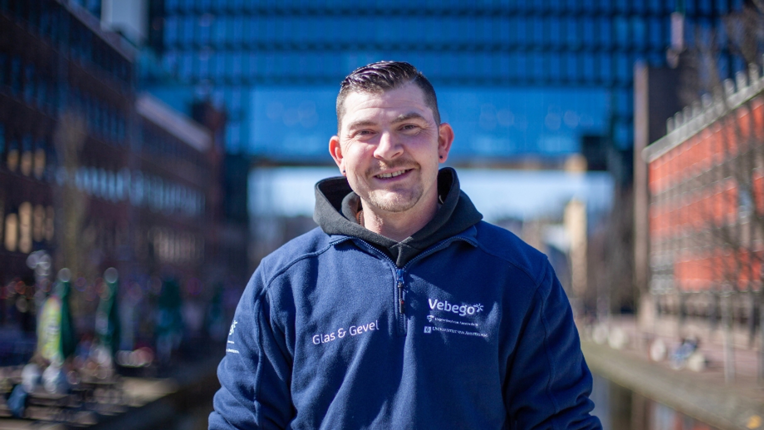 Tim’s glascarrière begon niet bij Vebego, maar bij een klein glazenwassersbedrijf in de regio: “Daar zat ik eigenlijk niet op mijn plek. Het grootste probleem was dat het salaris nooit op tijd kwam. En dat vind ik wel echt belangrijk. Een vriend van me werkte bij Vebego en vroeg me of ik daar ook kwam werken, dus toen heb ik de overstap gemaakt. Hier is alles perfect geregeld, dat is gewoon heel anders.”