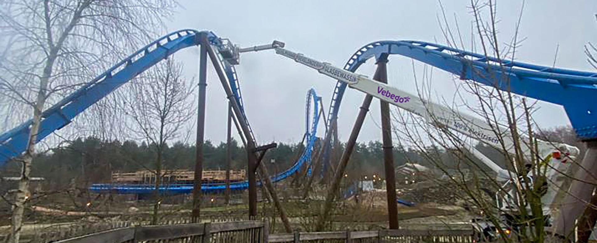 Wist je dat we binnen onze Glas en Gevel-tak niet alleen ramen wassen en gevels reinigen? We nemen ook unieke uitdagingen aan, zoals het schoonmaken van achtbanen. Onze collega’s hebben de uitdaging aangenomen om de Fenix-achtbaan bij attractiepark Toverland schoon te maken. Hoogtevrees? Daar hebben Michael en Claudia geen last van!